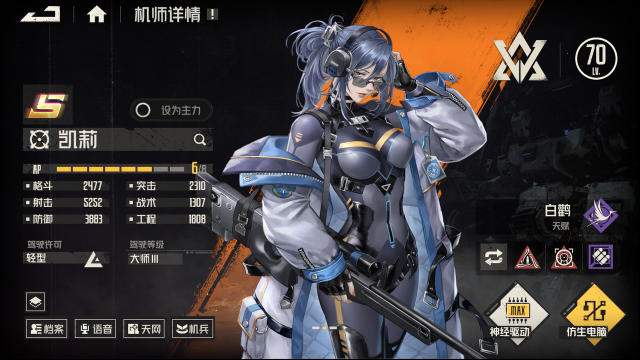 S級狙擊手,可駕駛輕型機(jī)兵。