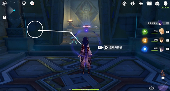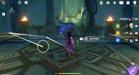 (5)、地圖西方向走,啟動(dòng)升降機(jī)一。