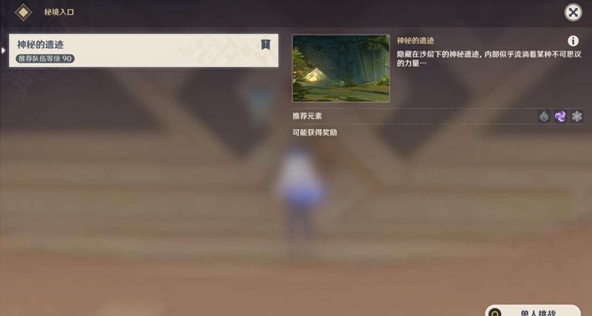 (1)、進(jìn)入秘境-神秘的遺跡開啟單人挑戰(zhàn)。