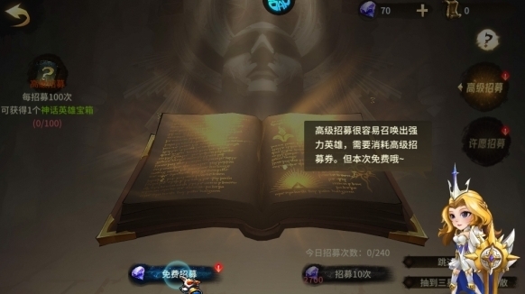 4、若覺(jué)得當(dāng)前英雄角色不夠用,玩家可以點(diǎn)擊招募功能,以招募更強(qiáng)大的英雄加入戰(zhàn)斗。