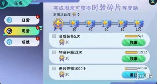 挑戰(zhàn)周常任務(wù),同樣能夠獲得時裝碎片等誘人獎勵,讓你在游戲的每一周都充滿動力。